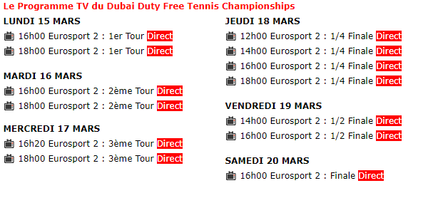 Du Dimanche 14 Mars 2021 au Samedi 20 Mars 2021, place au tournoi ATP 500 de Dubaï 2021. Sachez que cette compétition de tennis peut être diffusée sur la télévision Française soit en clair soit sur une chaîne payante.